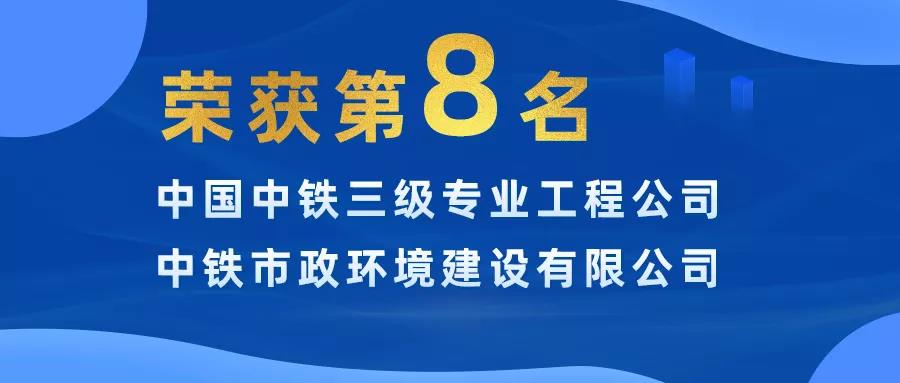 近日,中國中鐵發(fā)布了2020年度 “中國中鐵三級專業(yè)工程公司20強”,中鐵市政環(huán)境建設(shè)有限公司名列三級專業(yè)工程公司20強第八名,連續(xù)三年強勢入選!...