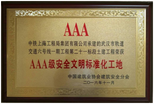 11月30日, 2016年度全國“AAA級安全文明標準化工地”表彰大會在安徽合肥召開,公司承建的武漢軌道交通六號線一期第二十一標段土建工程喜獲本年度“AAA級安全文明標準化工地”。武漢市軌道交通六號線一期第二十一標段土...