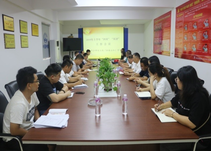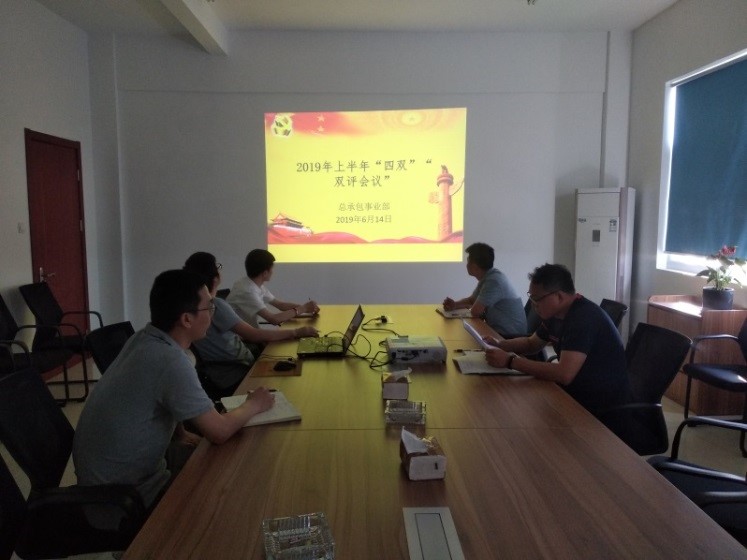 6月14日,總承包事業(yè)部黨支部組織召開2019年上半年“四雙”“雙評”工作會議,事業(yè)部全體員工參會。(白勇龍)