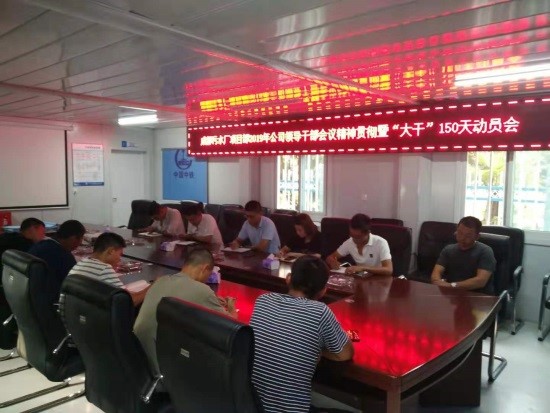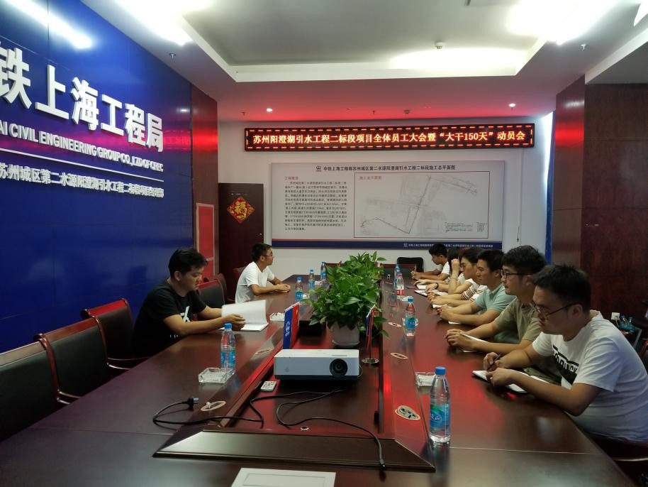 蘇州陽澄湖引水工程二標段項目部:組織項目部全體員工宣貫公司會議精神,并召開“大干150天”活動動員會,結合項目實際情況對后5個月的工作進行了安排部署:一是根據公司“大干150天”活動施工生產計劃,詳細制定頂管、沉管施工工期節點,明確大干期間工作任務。二是深入施工現場查缺補漏,確保人、機、料在大干期間滿足施工生產需求,保證工程進度、質量、安全全部達標。三是項目全體員工要有緊迫感,打起百分之百的精神,干好本職工作,借大干150天熱潮,完成公司下達的產值指標。(秦旖旎)