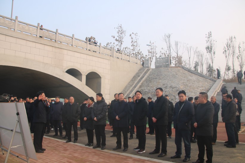 泰安市委書記崔洪剛,市委副書記、市長張濤到泰城水生態環境治理工程PPP項目芝田河生態修復工程“印月”景觀現場調研考察工作