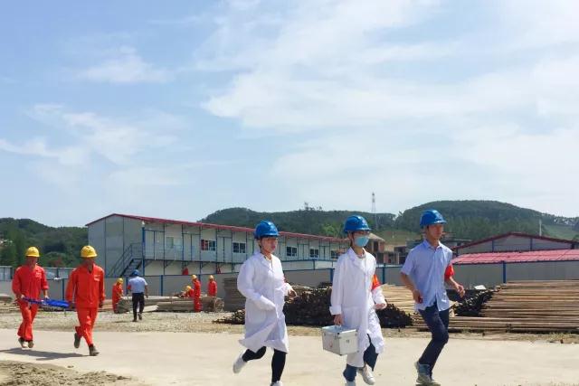 本次演練設(shè)定2018年第1號臺風(fēng)來臨,演練分為三種場景:福州市氣象臺分別發(fā)布黃色、橙色、紅色預(yù)警信號,市防指揮部依次啟動III級、Ⅱ級、I級響應(yīng)預(yù)案。目演練模擬了基坑排水不暢搶險排澇、施工現(xiàn)場設(shè)備材尚未加固,臨建松動、辦公生活區(qū)用電設(shè)備突然全部停止作業(yè)、搶險員在材料廠負(fù)傷,傷勢較重等場景。針對以上情況,抗臺組立即組織人員將現(xiàn)場材料集中固定,就地加固;排洪組立即疏通排水系統(tǒng),組織機械加大加寬排水溝,增設(shè)水泵加快排水;電力保障組啟動發(fā)電機組迅速恢復(fù)供電,確保基坑安全;生活醫(yī)療組立即趕往現(xiàn)場,對傷員進行初步處理,聯(lián)系瑯岐當(dāng)?shù)蒯t(yī)院,詳細(xì)描述傷員情況,請求救護車及時到位。